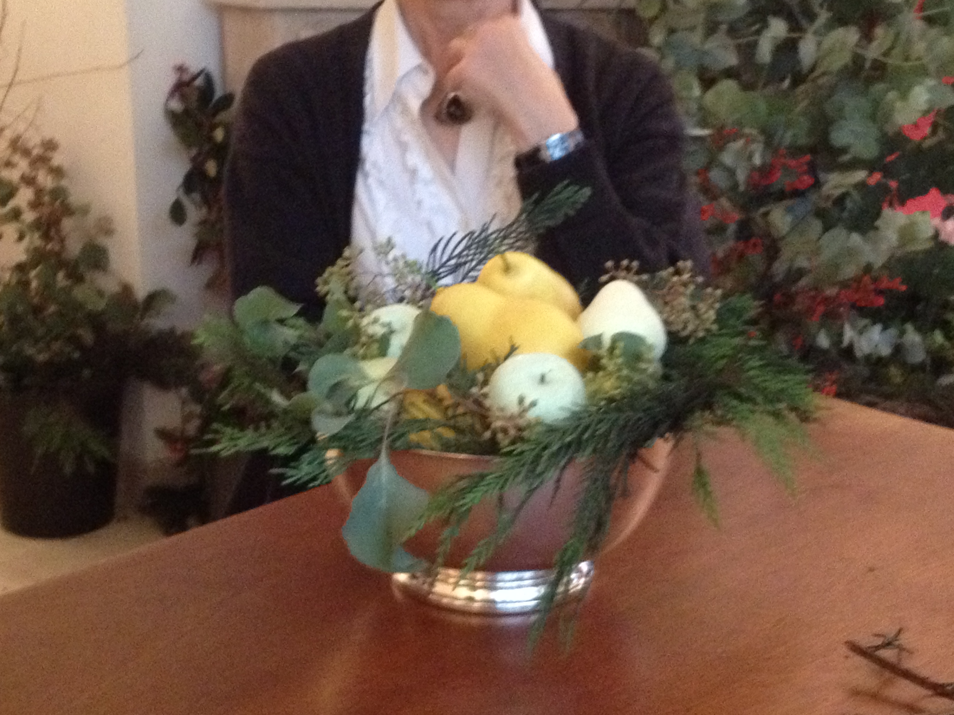 This is a picture of the demonstration. We learned to make baskets, wreaths, and do things like make frosted fruit.