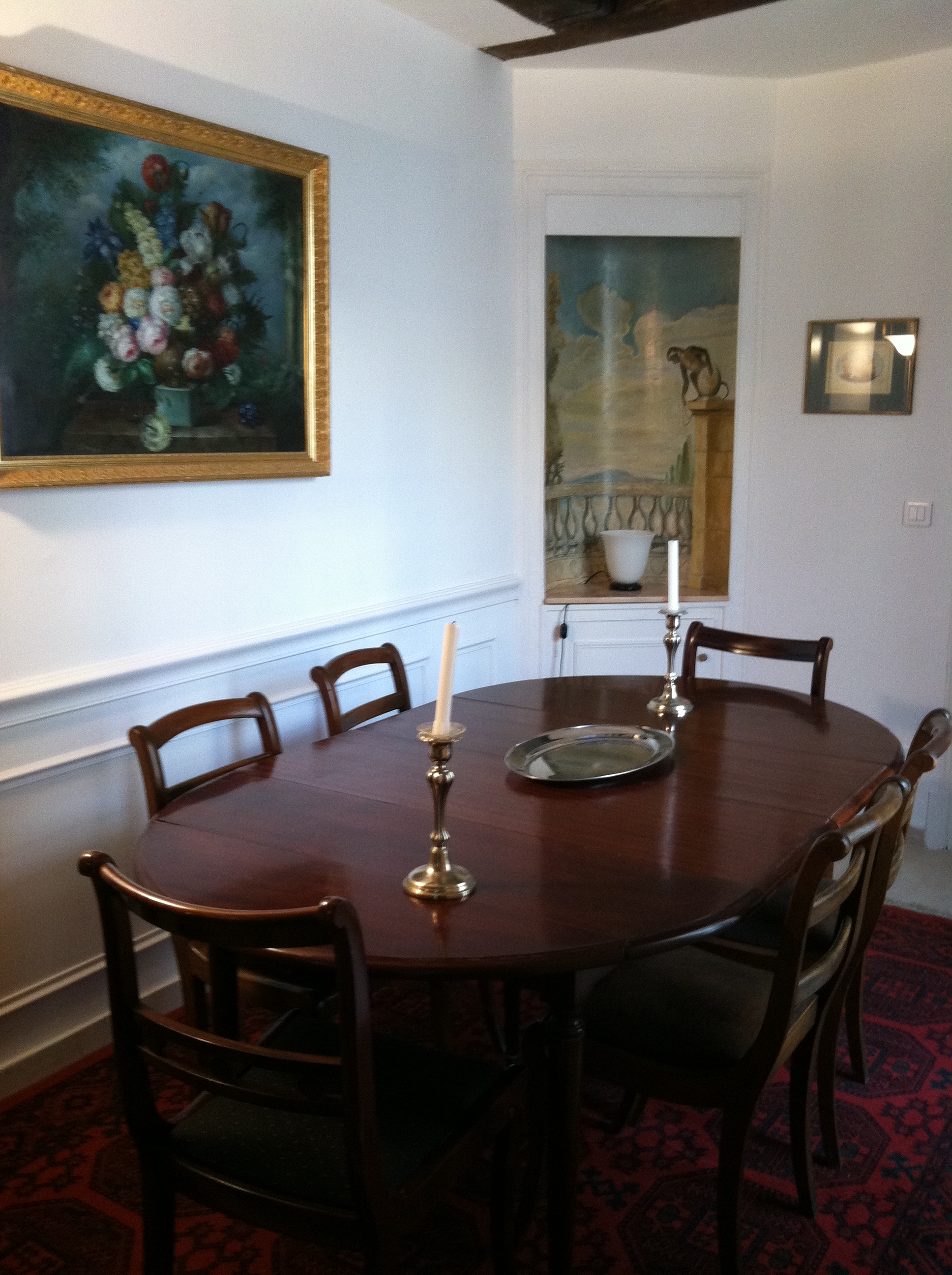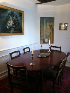 The dining area: featuring a painting by the landlord in the cove and a table that will stretch to seat 12