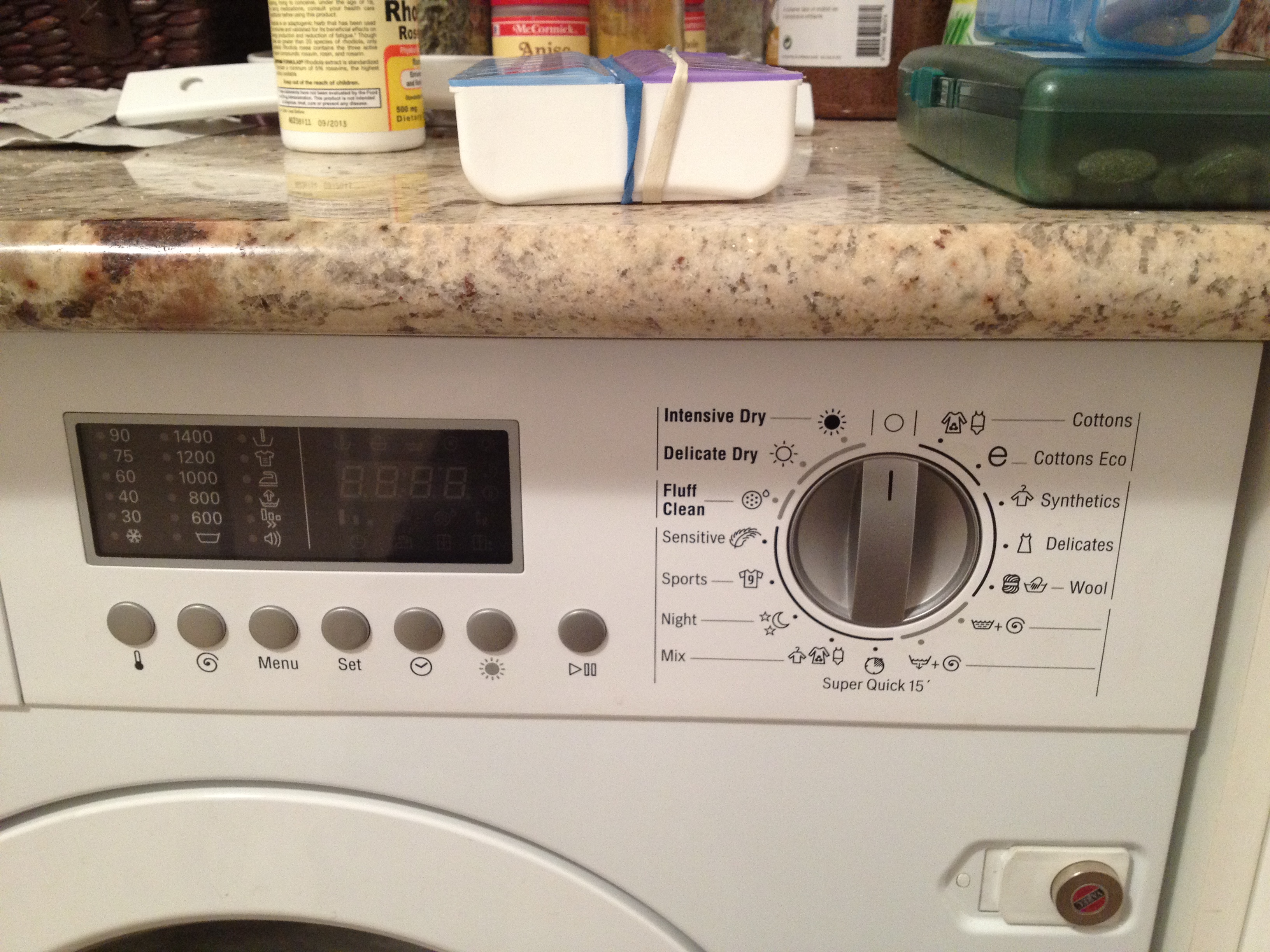 I was able to find directions for operating the machine in English (on line) and have since figured out that I can greatly shorten the wash cycle by picking different settings and adjusting the length of the wash.  We can now wash each batch for an hour or so…Drying is more complicated.  Only two settings…Very wrinkly or somewhat wrinkly.  Or hang the stuff up to dry on the drying rack.